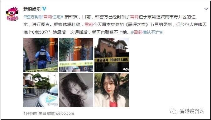 京畿城南水井警察署相关人士表示:“接到崔某死亡的报告后前往现场,结果确认崔某已经死亡,现正在确认是自杀还是他杀。”据悉,报案人是崔某的经纪人,于前一天下午6时30分左右与崔某进行最后一次通话后,因联系不上崔某而前往居住地进行了确认之后发现报案。